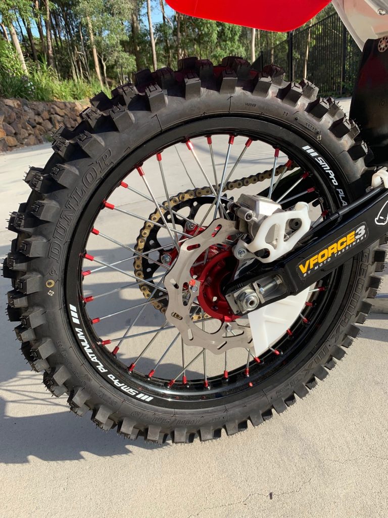 The bike goes really well. I can’t fault it. It has awesome brakes and the suspension works really well. It reminds me of when I used to ride two-strokes as a kid and I absolutely love it. I just put a modern twist on it with better brakes and suspension.