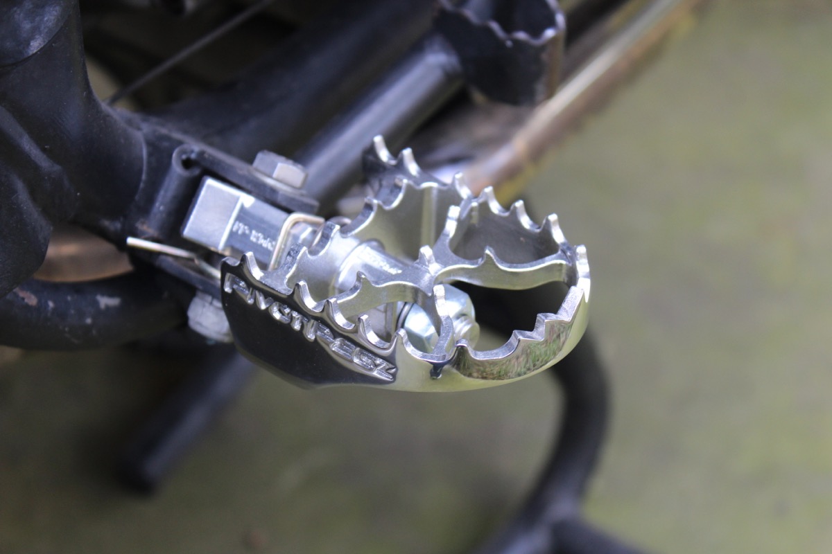 I haven’t been able to take the bike for a massive ride yet because I’ve had a busted ankle, so most of my rides have been in Victoria on weekends. The bike rides considerably better with the Wilbers shock. It doesn’t blow through the stroke. The old Hagon shock was too soft. When I would ride two-up with the old shock it would sag in the rear despite my partner only weighing 53kg, but now it sits perfectly. It also gives me more control up front. The fork, now fitted with Wilbers progressive springs and emulators, is actually pretty good. I’ve done a ride to Jindabyne and it kept up with the faster guys. The airbox was restricting it a lot so we drilled some holes in it. It had an oversized front disc (330mm) fitted by a previous owner. I have opted for shorter gearing for off-road use. I don’t need to do 180km/h down the highway so the lower gearing is fine as it improves the torque.