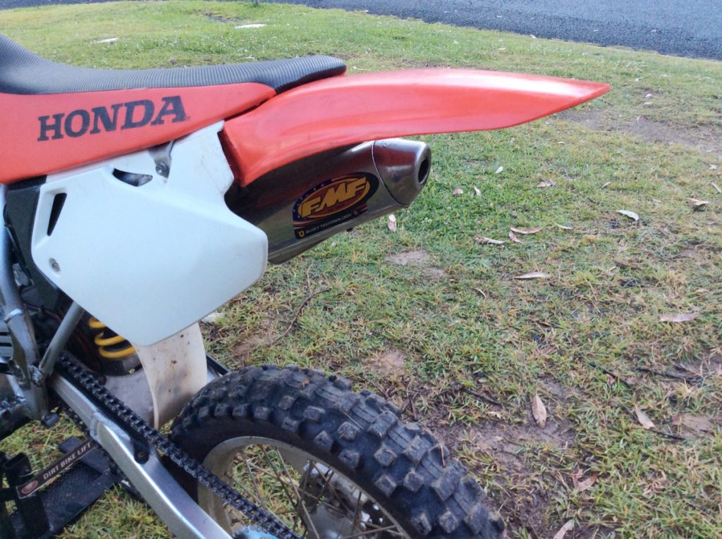 My bike is currently fitted with a flywheel weight, which makes it not so aggressive in the bottom-end. However, the mid-range and top-end power is awesome The bike has so much more power than my CRF125 and is more of an adrenaline rush. The suspension is so much better on the CR85 too and can be adjusted to suit my riding style. This bike has awesome power delivery and sounds sweet with the FMF muffler.