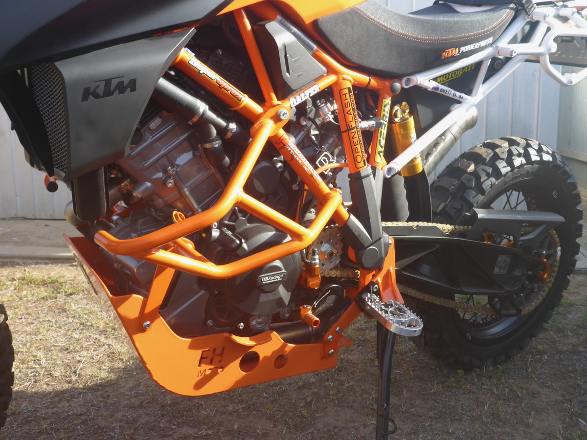 How long’s a piece of string? Where do I start? The project started as a brand new 2018 white Super Duke R. The tank and shrouds were sent straight to a paint shop to have them sprayed orange and black. I had the rest of the bike delivered and I stripped it the next day to the bare frame, electrics and engine, with only 5km on the clock. I replaced the suspension, put the Adventure swingarm on it, the Italian Kineo tubeless, CNC-machined wheels and there is heaps more. I just went to town with it. I don’t work anymore because I broke my back, so I just plod around building stuff and ride when I can. The build took me about three months.