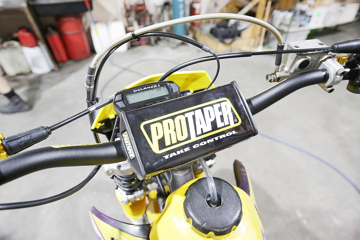 For this reason we decided to leave the paint and plastics. Instead, we had Topline Upholstery fix the stock seat and fitted a graphics kit by Kustom MX to make it look fresh without replacing the plastics. The bike rides well and is mechanically sound, which is exactly what we were looking for.