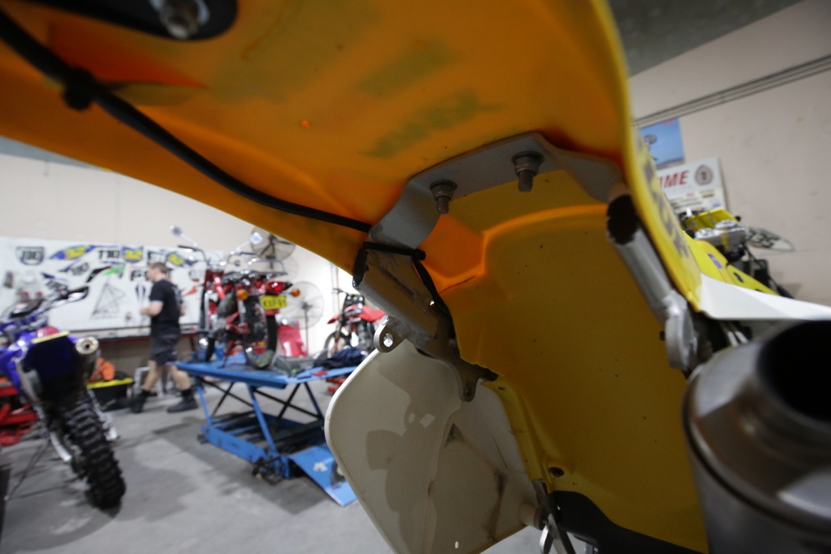 Once the RMX was all back together, I filled the tank with a slightly rich mixture so the engine could run-in with a little extra oil. I warmed the bike up and let it cool down on the stand in the workshop to check for leaks. Then I ran it around the car park and up and down the street to get the jetting right and to make sure it was running correctly. While doing this I noticed a small coolant leak from one of the hoses which turned out to be a pinhole. These things happen so it’s important to check before heading into the bush.