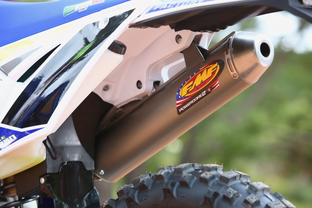 My experience with Akrapovic exhausts has been nothing but positive and Sherco has made the right call going with them for its Factory models. The result of the full Akrapovic system is not only that glorious sound resonating from the muffler but stronger bottom-end power and crisper throttle response.