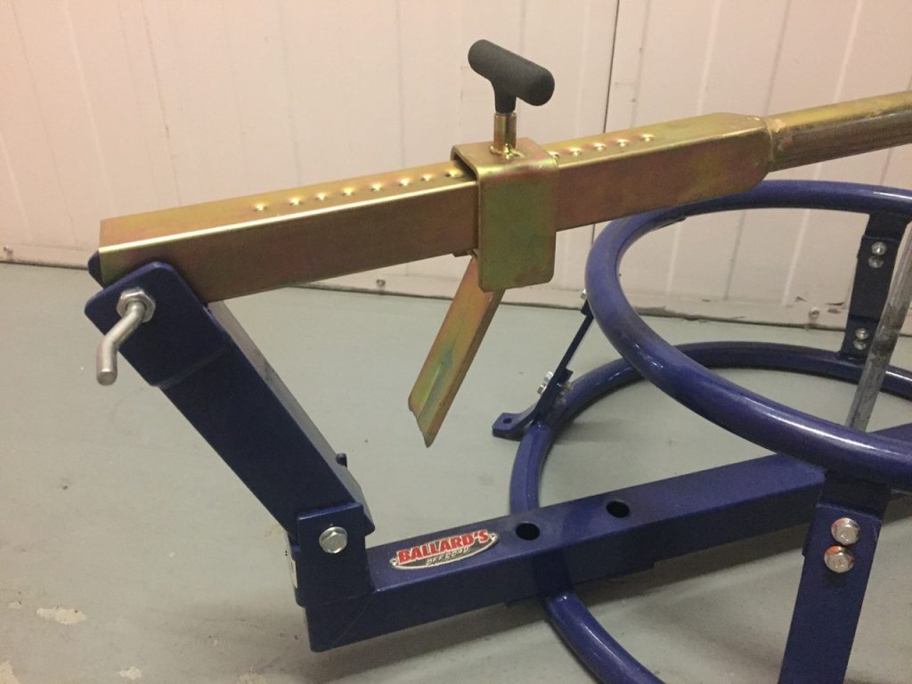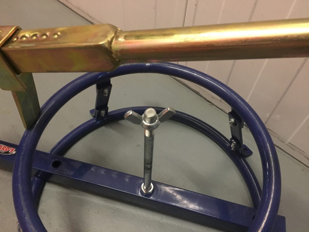 Naturally, we went with the Ballard’s Tyre Changer with Bead Breaker from MX Store, it’s not hydraulic but it’s the next best thing and a lot cheaper. The tyre changer comes in a box of pieces but it’s made up of four main bits, top and bottom rings, crossbar and bead breaker. It’s easy enough to assemble and, once together, feels very well built.