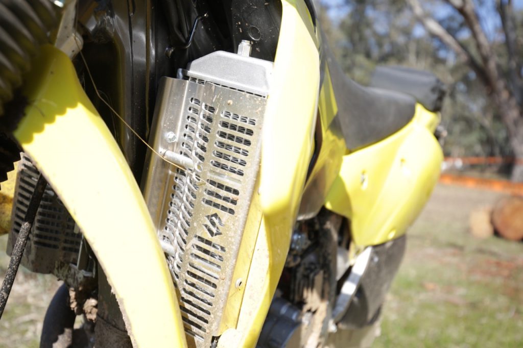 Next up I would also opt for a stronger handlebar as it doesn’t take much of a fall to twist the standard steel one. Protection wise, Suzuki has a promotion going at the moment where you receive a “Bonus Enduro Kit” with the DR-Z which includes Barkbuster Suzuki handguards, Suzuki bashplate, Suzuki radiator guards and Suzuki muffler end-cap that improves power while limiting the noise increase.