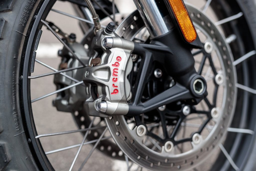 The XE version of the Scrambler (not to be confused with the XC) has had its heart altered. The low-inertia, six-speed, eight-valve parallel twin is derived from the Bonneville engine but has been tuned for the bush. To improve the XE’s performance off-road, Triumph added a magnesium cam cover, altered the clutch assembly, changed the balance shafts, inserted a new crankshaft and lighter alternator and added a high-compression head. The end result is an incredibly torquey engine that, while a little more aggressive than some of the 1200cc ADV bikes, is just as manageable with some controlled clutch input.