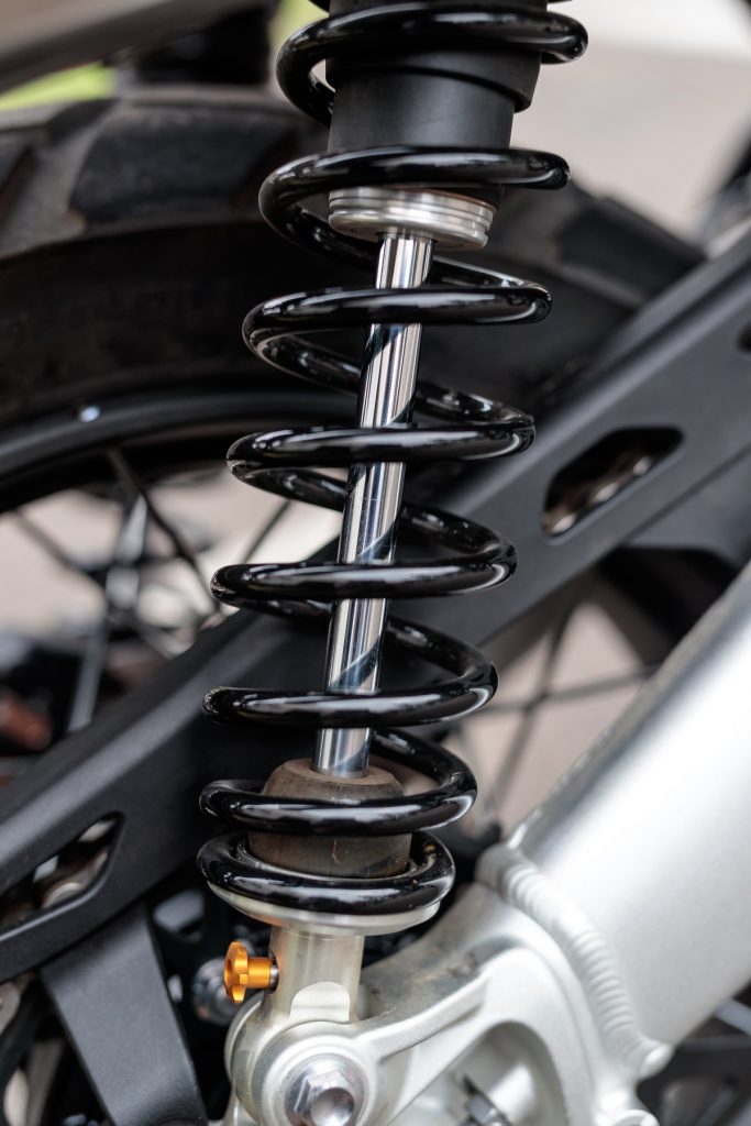 It took some convincing that the Ohlins shocks would work but once I smashed into a bunch of square-edged bumps I was convinced. Sure it is a little heavier and the exposed springs could come into contact with the ground if you crash, but the heavier rear-end actually helps keep the bike tracking straight. You can also make quick adjustments manually so if you know you’re going to tackle a certain terrain for the day you can adjust the shocks to excel in almost any condition.