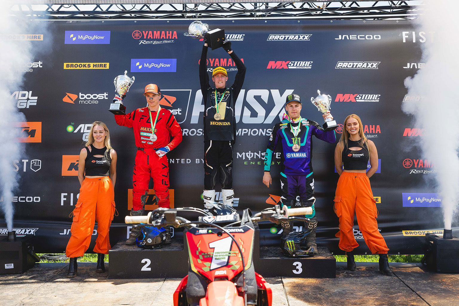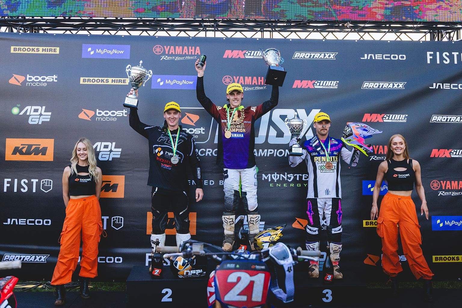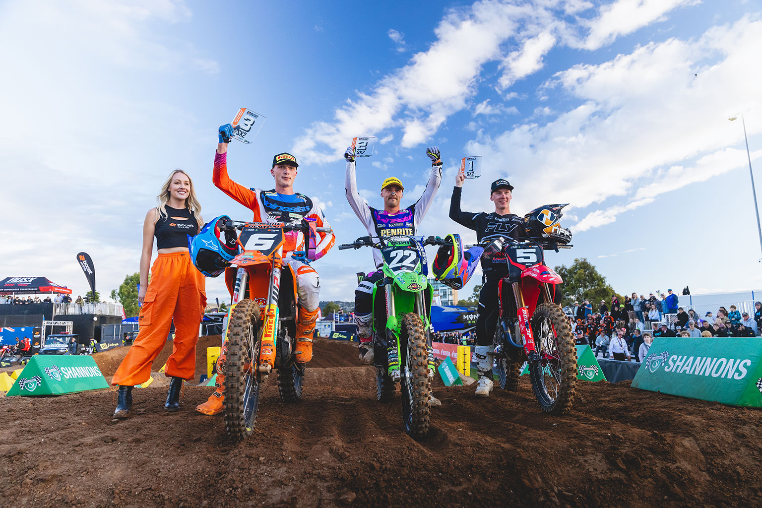 Larwood won the final race of the season and reflected on a significant step forward: “It’s tough. I’ve had a lot of injuries throughout my career, and I made too many mistakes early on because I was being cautious. This weekend I proved to myself that I can win races, I just need to do it more consistently if I want to win a championship.” Kingsford lost the battle but won the SX2 war, summing up his season with “From laying on the deck at round one to being champion… I made it hard for myself. It’s bloody unbelievable. Thank you to my team, I couldn’t be here without them.”
