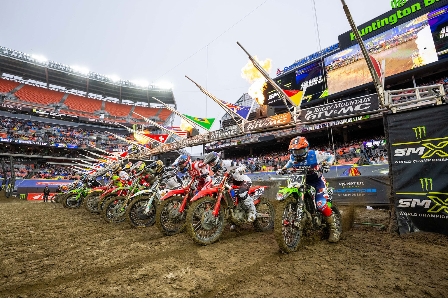 Monster Energy Supercross returned to Cleveland for the first time since 1995, and it did so in some of the most unpredictable conditions of the season. An enthusiastic crowd at Huntington Bank Field on the shores of Lake Erie endured rain showers, cold temperatures and swirling winds for Round 14 of the 2026 Monster Energy SMX World Championship, where the 450SMX title fight took another dramatic turn – one that centred heavily on Honda HRC Progressive’s Hunter Lawrence.