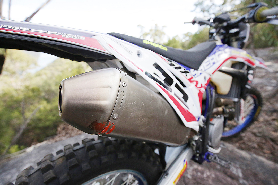 With the Australian Four-Day Enduro being just a few hours from my house, I decided to try and get myself back into race shape and the Sherco was my weapon of choice. I did a bunch of riding and testing before Cessnock and had a lot of great people come on board. We used the team suspension guru, Chad Talbot of Chad’s Offroad Setups, and he fitted up some MXTech cartridge inserts in the fork and worked on the shock with an MX Tech Triple adjuster as well as some valving. The standard WP Xplor settings work well but, for racing, I needed a firmer set-up and that is what Chad gave me. He firmed the bike up a heap and got me moving along the tracks with some more pace.