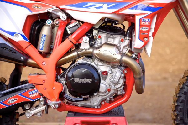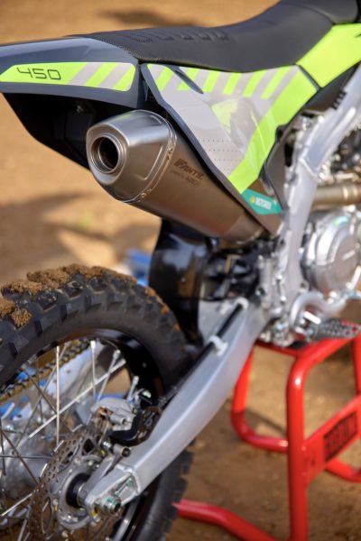 Weighing in at 104.5kg dry, the RX 450 is relatively light for the class, making it a manageable machine, especially for novice riders or those returning to the sport after time off. The 7.0-litre fuel tank, with an additional 1.4-litre reserve, allows for decent track time without frequent stops. While pro riders may seek to stiffen the suspension and squeeze more power out of the engine, the Beta RX 450 is perfect for vet riders or those looking for a bike with a comfortable, friendly feel that’s easy to ride.