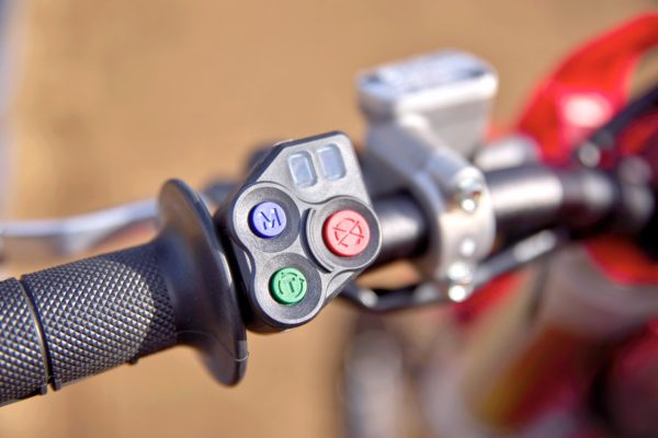 Ergonomically, Honda nailed it. The CRF450R’s plastics are well-shaped, the ’bar has a comfortable bend, and the seat offers solid support. The one downside? The big, solid rubber grips, which not only look out of place but also feel about as comfortable as gripping an electric fence.