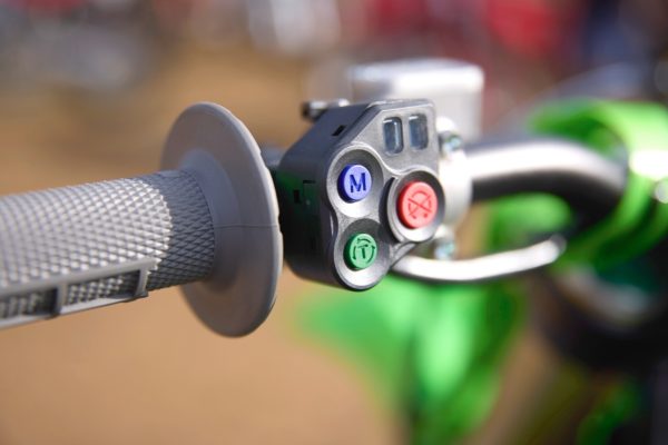 Despite this, the KX450 does come with some noteworthy features. The bike includes electronic rider aids such as Kawasaki Traction Control (KTRC) and Launch Control Mode, which, when paired with the bike’s smartphone connectivity via the RIDEOLOGY THE APP KX, provide some customisable control over its performance. The bike’s dimensions –2180mm in length, 820mm in width, and a height of 1270mm with a seat height of 960mm – combine with a wheelbase of 1480 mm to create a stable platform, but only when the suspension is adequately tuned.