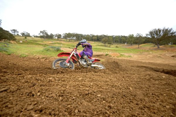 For our 450cc motocross shootout this year we decided to use the Goulburn Motocross Track as our venue. Goulburn is a unique track that is situated on a steep hill with fast runs up and down the hillside with some decent big hits that are rarely seen on other motocross tracks around Australia these days. The club gave the track a good groom and ripped in some deep lines for us and shaped up some decent lips on the jumps so we could give the 450s a good workout on a fast track while being able to catch some decent air time and have some fun.