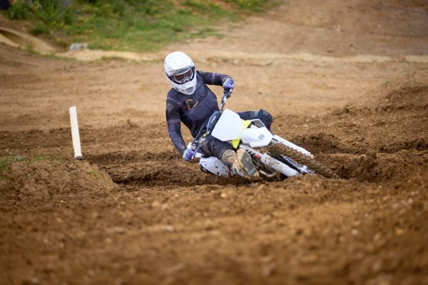 The Husky rode noticeably lower to the ground compared to its Austrian siblings at 450cc motocross shootout. For shorter riders, this grounded feel may be an advantage, giving a more planted sensation, particularly in straight-line stability, which even outperforms the KTM. At 946mm, the seat height is lower, which can make cornering and handling feel smooth and secure. For taller riders like myself, however, this low stance can make it challenging to keep my leg out of deeper ruts. Still, the reduced height doesn’t detract from the Husky’s cornering prowess; in fact, its 1490mm wheelbase helps the bike feel balanced and quick to turn.
