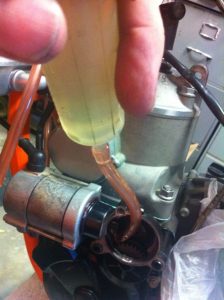 KTM’s solution was to fit the starter motor on the side of the engine horizontally above the flywheel magneto. This solution was also used on Kato’s Husaberg and Husqvarna models.