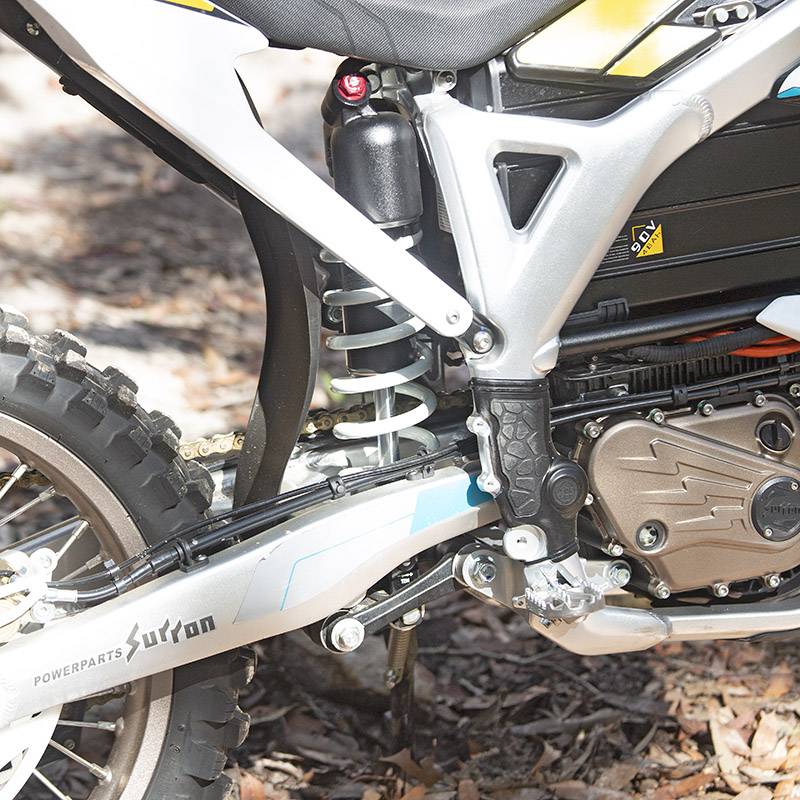 The lack of engine noise allows you to hear the chain and tyres as well as the sticks banging on the swingarm and frame. One noise I did find to my advantage was the rear wheel noise. You can hear it biting into the dirt or spinning and breaking traction. This isn’t something you usually hear on a petrol bike and all of a sudden you can use your sense of hearing to control the rear wheel traction rather than feedback through the pegs and seat.