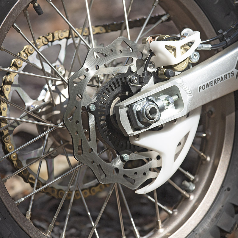 The brakes have a nice solid feel to them and while they are not Brembo they did do a good job for trail riding and managed to pull the bike up easy enough.