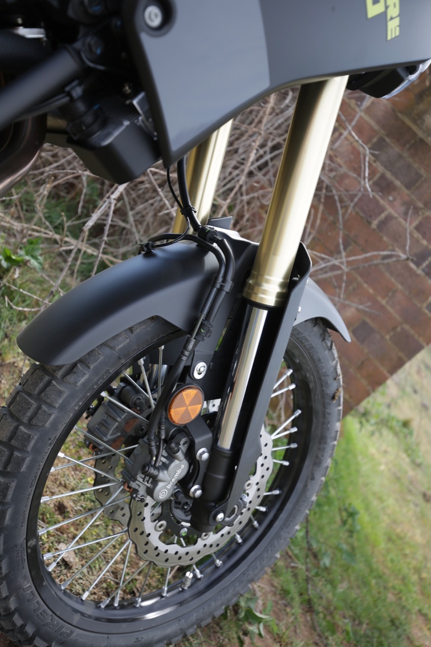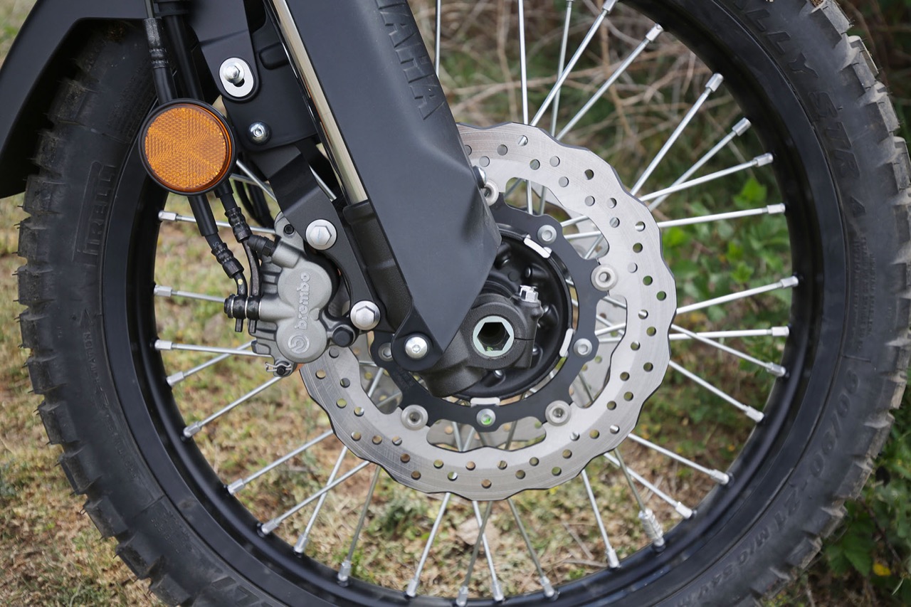 It’s got a rally-style cockpit and spoked rims with 21-inch front. The throttle is still cable so there’s no confusing ride modes and the ABS is either on or off, as in Road or Off-Road mode. Same goes with the traction control. It’s a simple design, just like a dirtbike and just how I like it. The front discs are down slightly in size from 298mm to 282mm but the rear remains the same at 245mm with both ends running the ever-impressive Brembo systems.