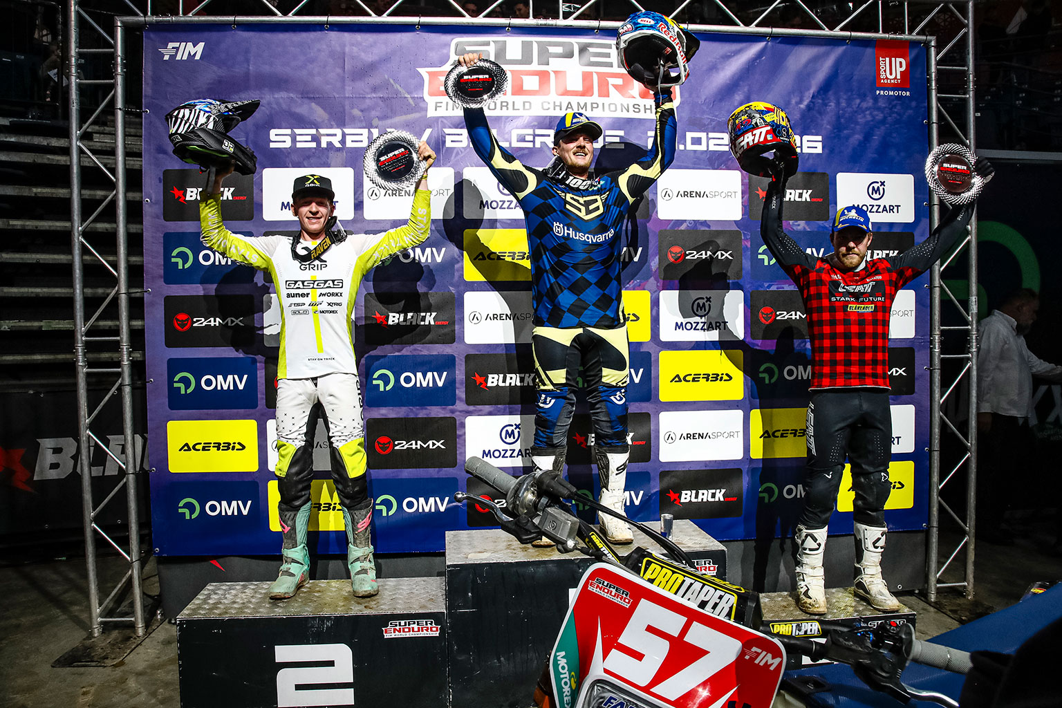 With the SuperPole victory and three race wins, Bolt secured maximum points in Belgrade, further strengthening his position at the top of the 2026 FIM SuperEnduro World Championship standings. Holding an 85-point lead with two rounds remaining, the Husqvarna Factory Racing rider now heads into the closing stages of the season with the opportunity to secure the title at the next round.