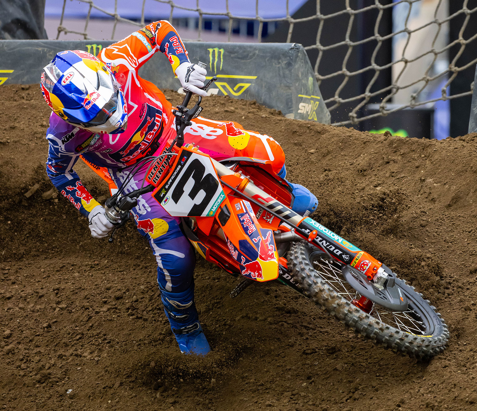 Two-time 450SX Champion Tomac entered the weekend only 15 points out of the lead, but a heavy crash in the whoops during this morning’s Q1 session would ultimately end his night before the gate even dropped. Tomac attempted to ride in the second session, before the decision was made for him to park and undergo further medical evaluation after experiencing ongoing discomfort in his hip region.