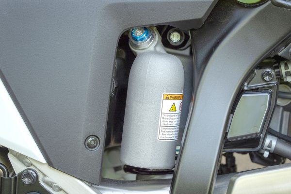 Suspension is another major leap forward. The KYB gear is stiffer than the old bike, particularly in the front, and offers far better support under braking and on chop. The rear shock is a bit softer than ideal – especially for heavier riders or loaded setups – but it’s not wallowy. For everyday trail work and dual-sport exploring, the balance is right. For more aggressive riding, a stiffer spring might be in order, and if you plan on loading it up to adventure ride, you will definitely need a heavier shock spring.
