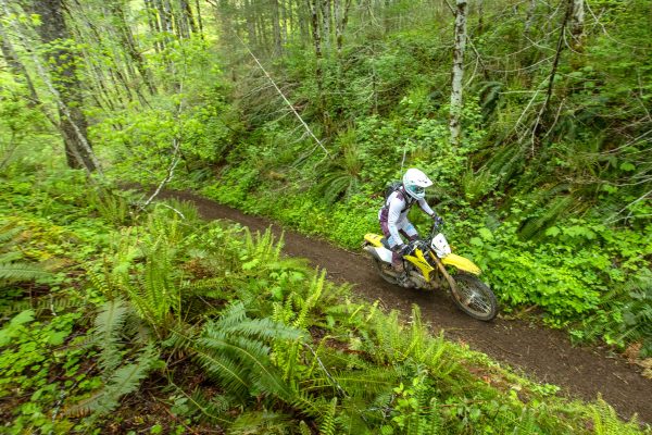 To see this new dual-sport in its natural habitat, Suzuki didn’t just ship us to any random patch of dirt – the company flew us halfway across the globe to Portland, Oregon, to launch the DR-Z4S where rugged trails and moody skies meet. There, just three weeks out from the American summer, the mercury barely crept above 15°C, and a grey ceiling hung low over the pines – classic Pacific Northwest. The trail was pristine, groomed like a golf course fairway with a fair bit of singletrack, fire road and bitumen. The perfect playground for a dual-sport that wants to be more than just a road-legal trailbike.