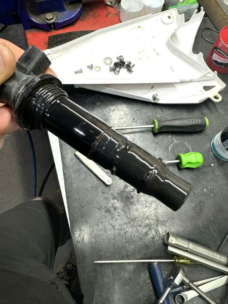 Many four stroke spark plug caps are long and thin in shape and extend down into the cylinder head. The rubber on these caps can become dry and cause them to be really difficult to refit.