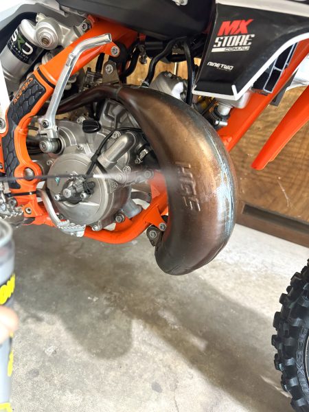 After washing the bike and cleaning up the pipe, give it a good soaking with some WD40 and then wipe up the excess with a clean rag. This will put a coating on the pipe and prevent it from rusting.
