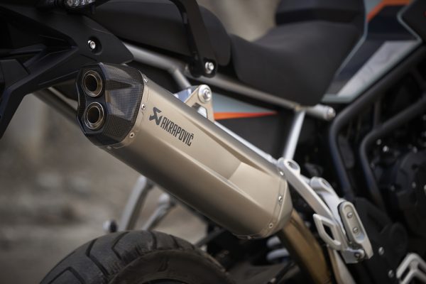 The Desert Edition takes its base from the Rally Pro models, focusing on off-road capability. The Tiger 900 Desert Edition comes in Urban Grey and Sapphire Black with Baja Orange highlights, while the Tiger 1200 Desert Edition features two paint options reflecting its off-road character. These models add a standard Akrapovič silencer and fuel-tank protection bars.