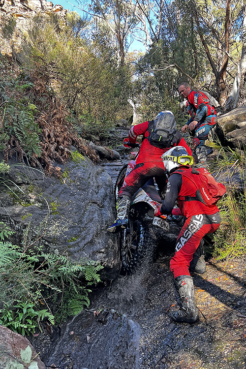 “On Day 2 I hopped on the EC350F and it was great through all the tight single track and then I jumped straight onto the EC300 and found it a little bit too much through all the tight singletrack. It was awesome to get up some of the hard enduro stuff Grabbo took us on. I never thought I’d ever go up something like that. If I was on my own, I’d never put my bike at it and have a go myself but with Grabham helping me and riding that EC250, it was just so much easier. When you were there you had to do it and it was bloody good to get up it.”