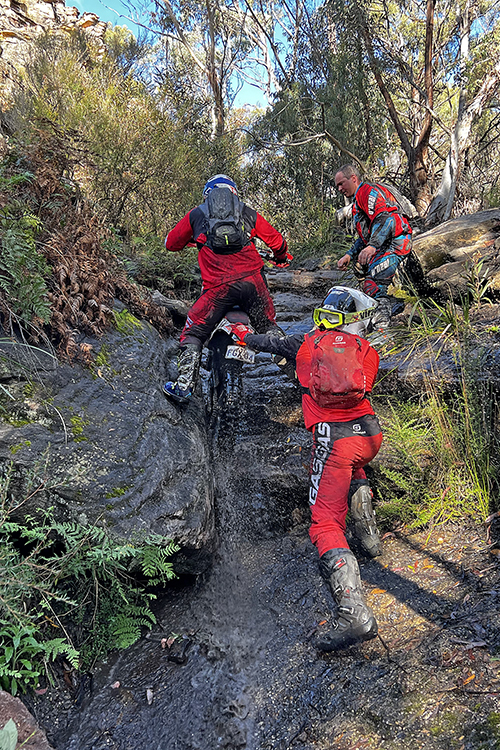 It’s that sense of accomplishment that I want all my riders to feel when they come on a VIP Experience. The track Angus is referring to follows a pretty steep canyon up into a waterfall and yes, we have to get up the waterfall. Most people get to the waterfall section and assume we go somewhere else, until they spot my bike at the top. It’s deceptive because it has more traction than you’d think, especially if it’s been running hard because it strips all the moss off it.