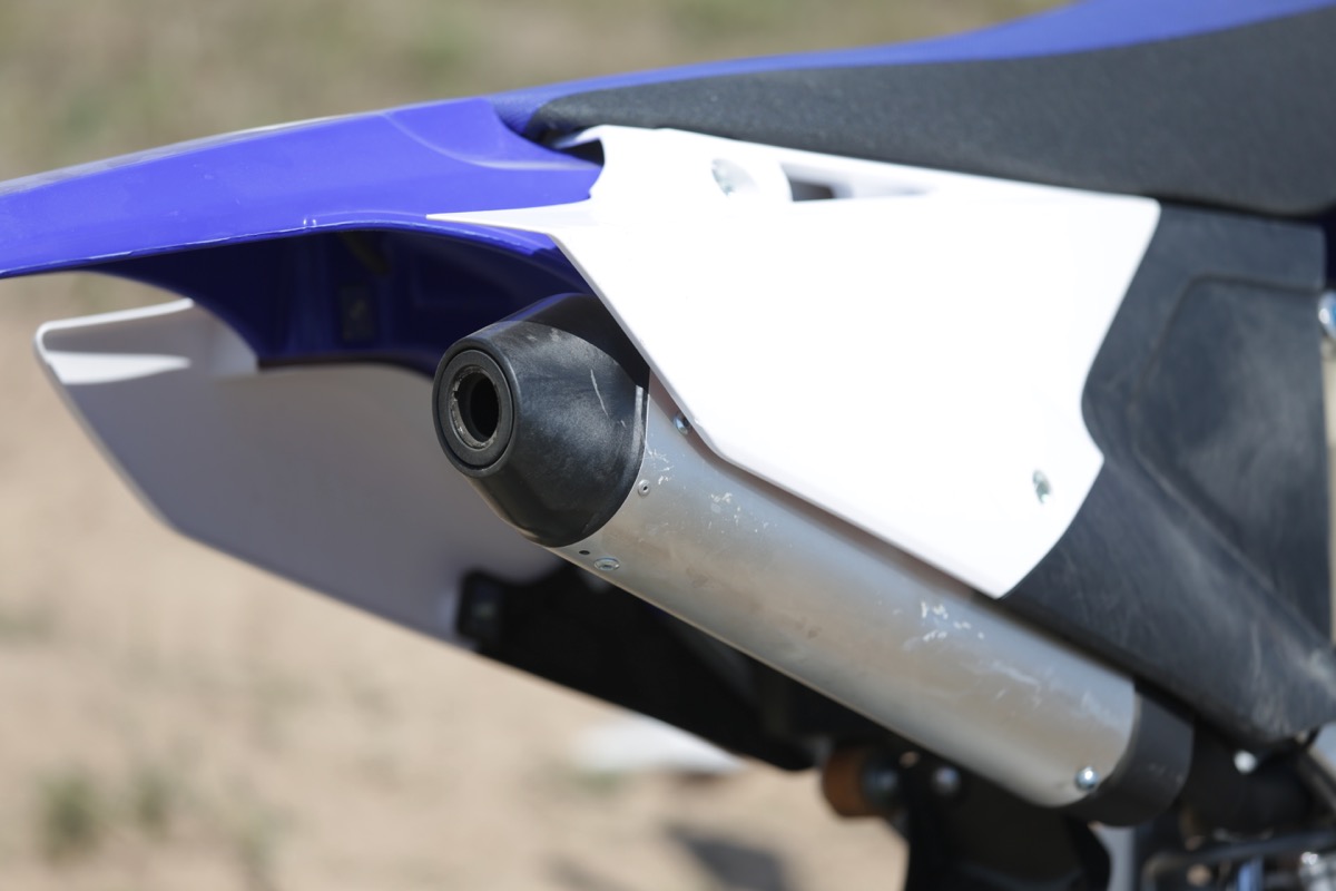A big part of that feeling is the KYB suspension. Up front the 48mm spring-cartridge fork runs softer settings than the motocrosser and that’s good news, as most MX suspension beats me up on enduro tracks. The softer setting Yamaha has chosen to go with worked great for my 83kg. It soaked up the dry, slippery terrain with ease, and never bottomed out when I got adventurous on the endurocross track. Yamaha has gone the same route with the KYB shock, which has also received softer settings for off-road conditions. Once again it has nailed things, as the rear-end felt great.