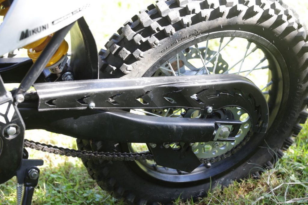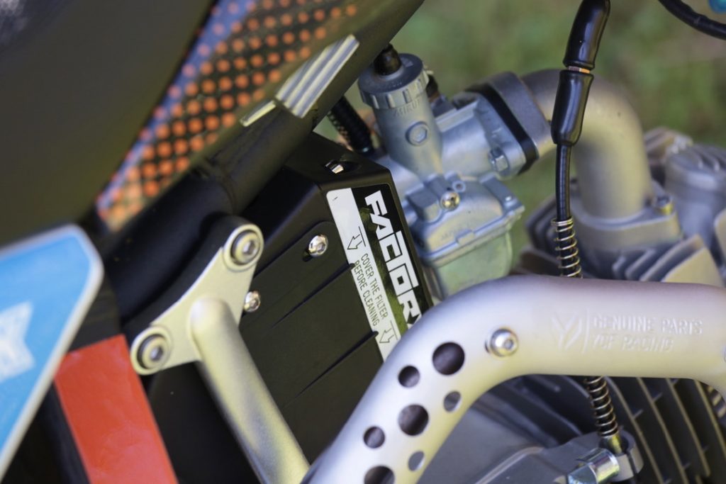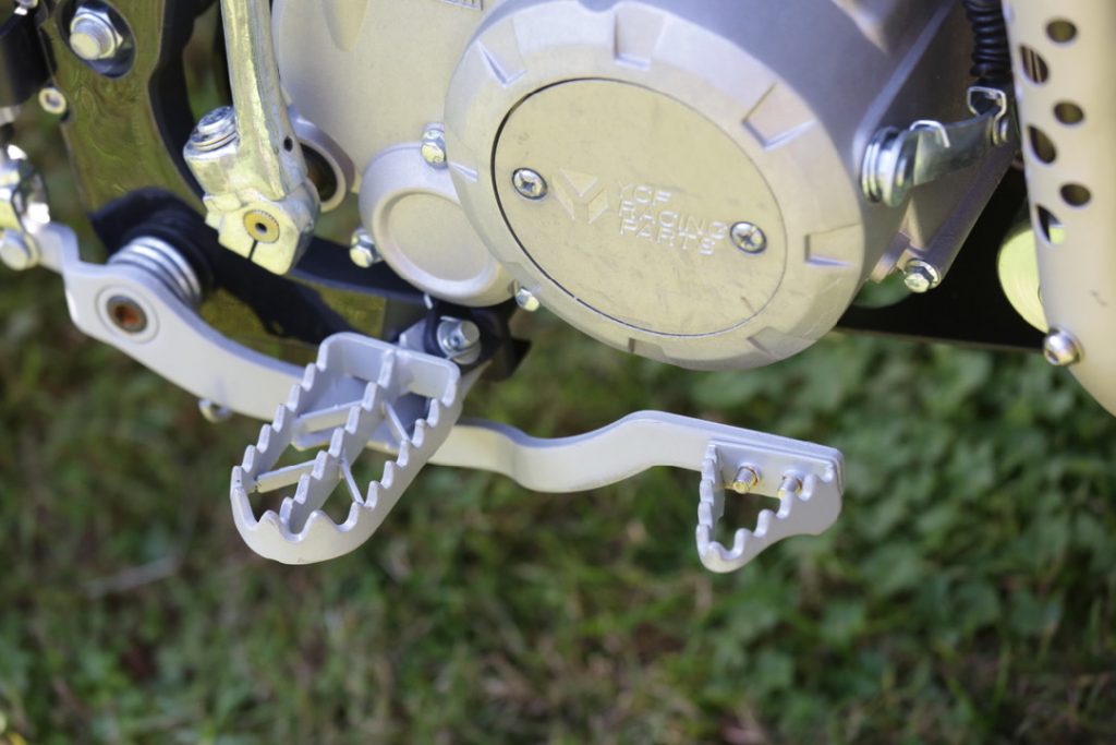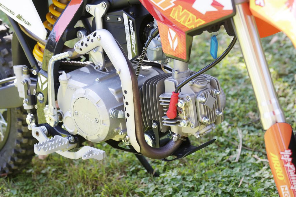 The YCF BIGY 150E MX has the same running gear as a big bike, and even looks like one. It runs a 146cc, air-cooled, two-valve engine with a Mikuni carburetor and four-speed gearbox. But, where the 150E distinguishes itself is in the shift pattern.